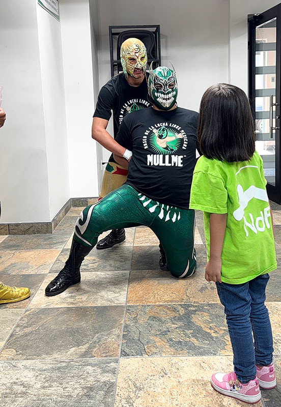 Además, se realizaron dinámicas, juegos y actividades creativas, donde cada niño pintó una máscara y eligió su propio nombre de luchador.
